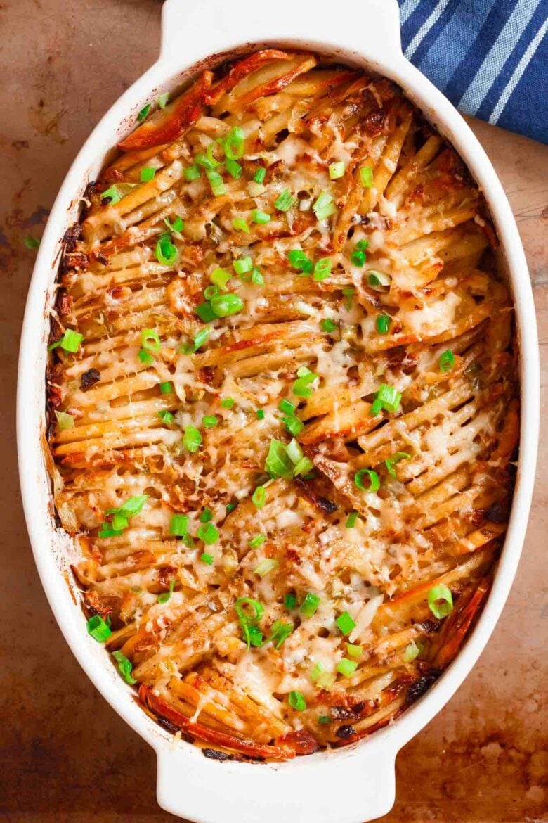 This Hasselback Potatoes recipe is made easy in casserole form – meant to be shared with your favorite people. The potatoes bake into beautiful layers with caramelized edges and a cheesy, crispy finish.