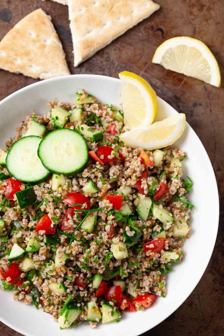 This tabbouleh recipe brings fresh herbs and bright flavor to the table. The mix of parsley, mint, lemon, and olive oil makes for a deliciously healthy and hearty side dish or lunch.
